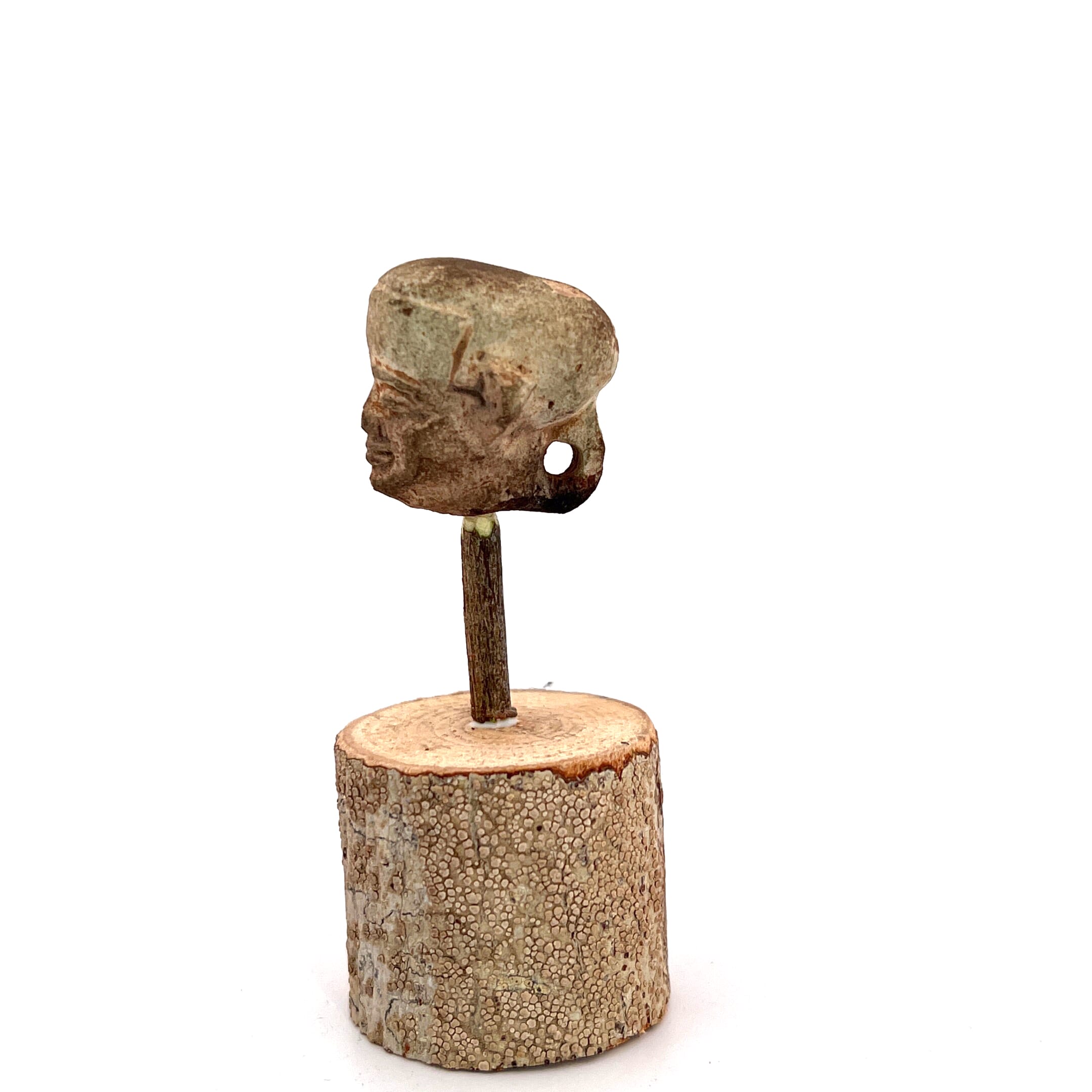 Medieval iron spur, finely wrought in wishbone shape, with small acorn finial at junction, a rotating spiked wheel protruding, with double holes for attachment to boots.