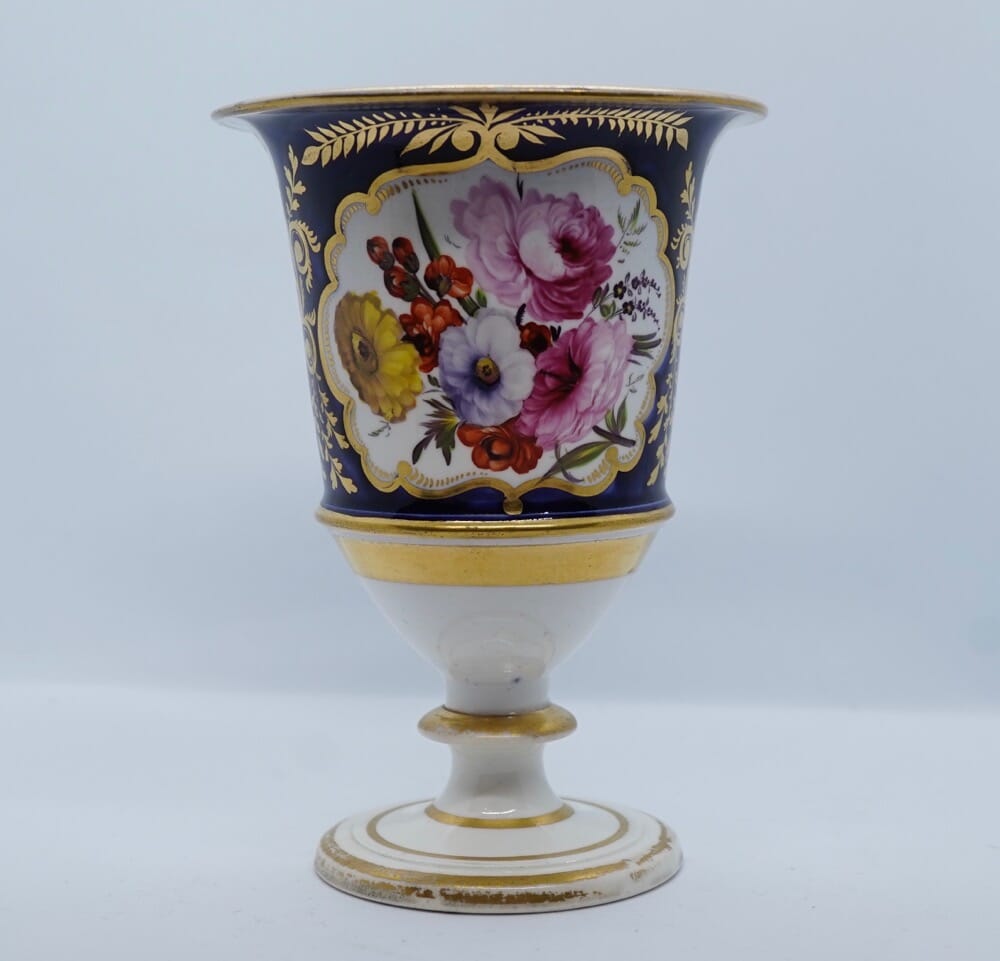 Miniature Coalport bowl, Landscape panels on blue ground, c. 1830