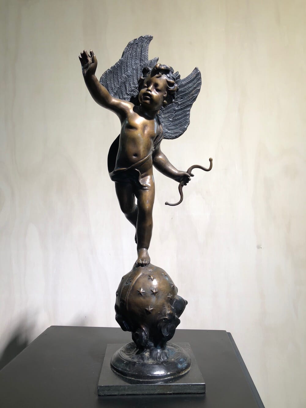 Oak figure of a female saint, well carved in flowing robes , her head facing upward and hands clasped, standing on a half orb. Continental, 17th century or earlier