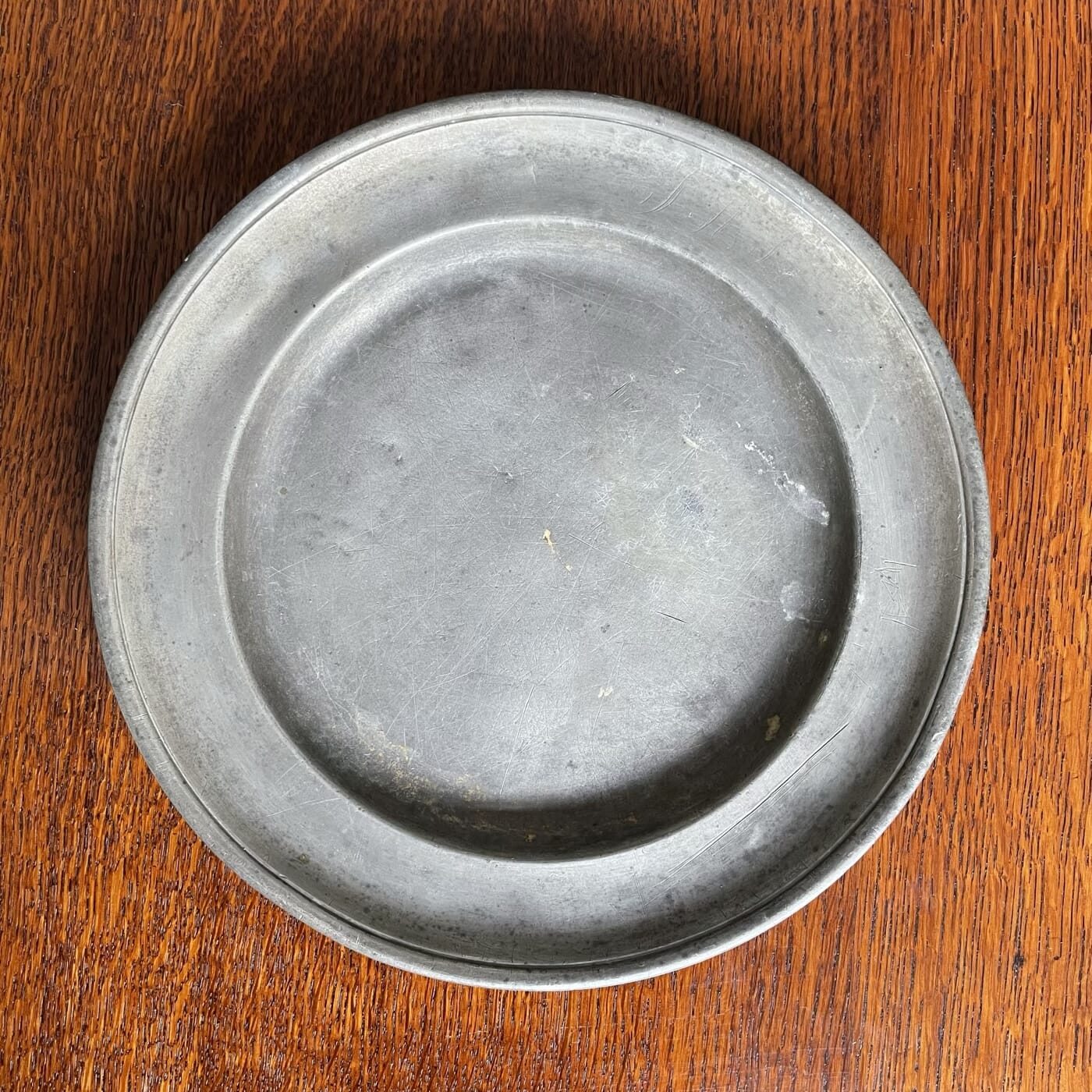 One Quart pewter tankard, worn engraving, Mid 19th C