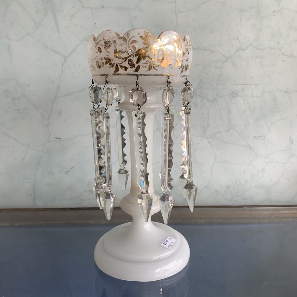 Pair of Victorian pressed glass vases, in mottled white/purple/green, modelled as ribbed planters on stands.