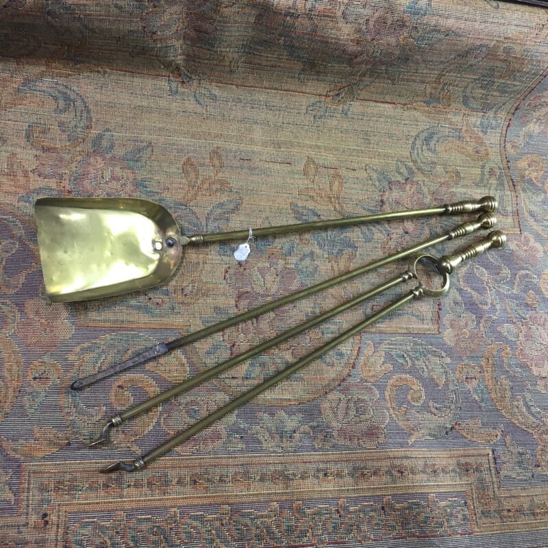 Pair of Victorian brass fire irons, c.1900