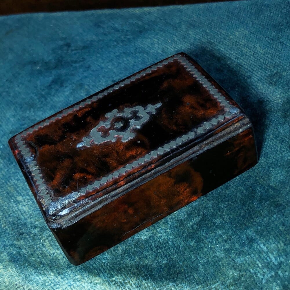 Paper Maché card case, the shapely form decorated with inlaid mother-of-pearl flowers. Circa 1860