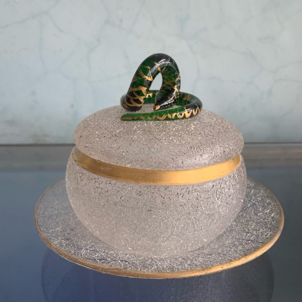 Pool pottery dish, colourful handpainted CS pattern, c. 1970