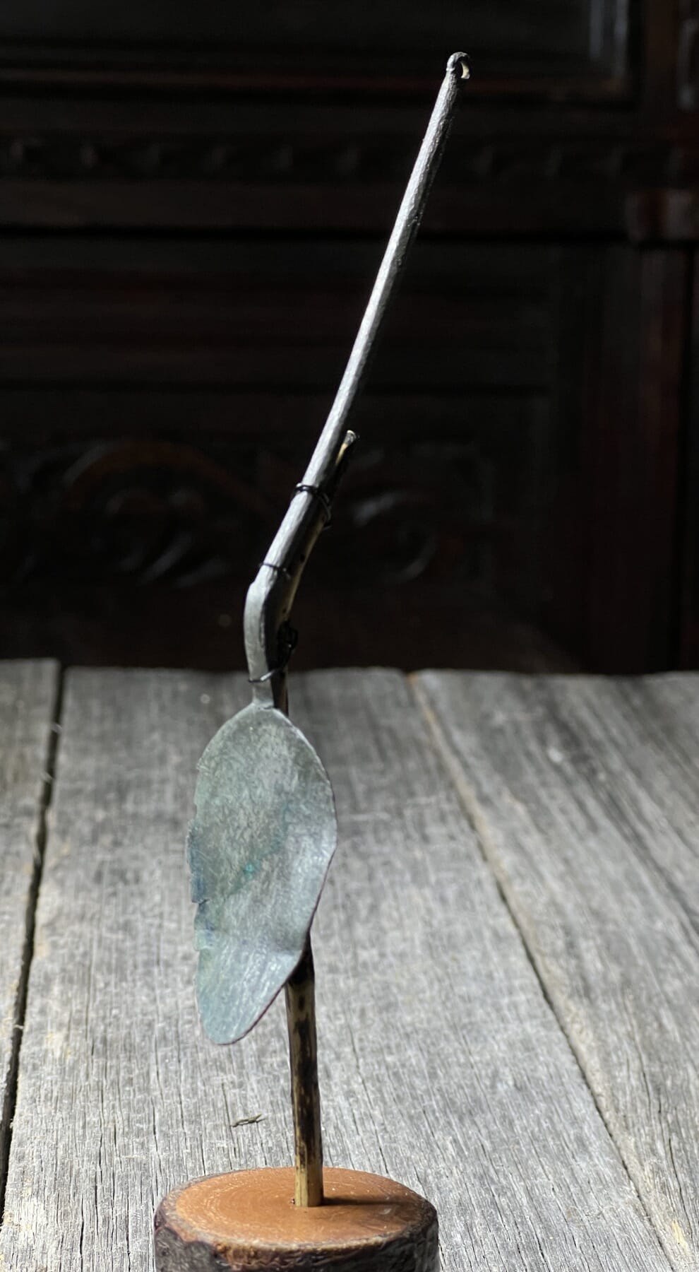 Roman bronze ‘bow’ fibula, of interesting rounded form with rib to top and middle, the base with a ‘hoof foot’, with spring & pin.
