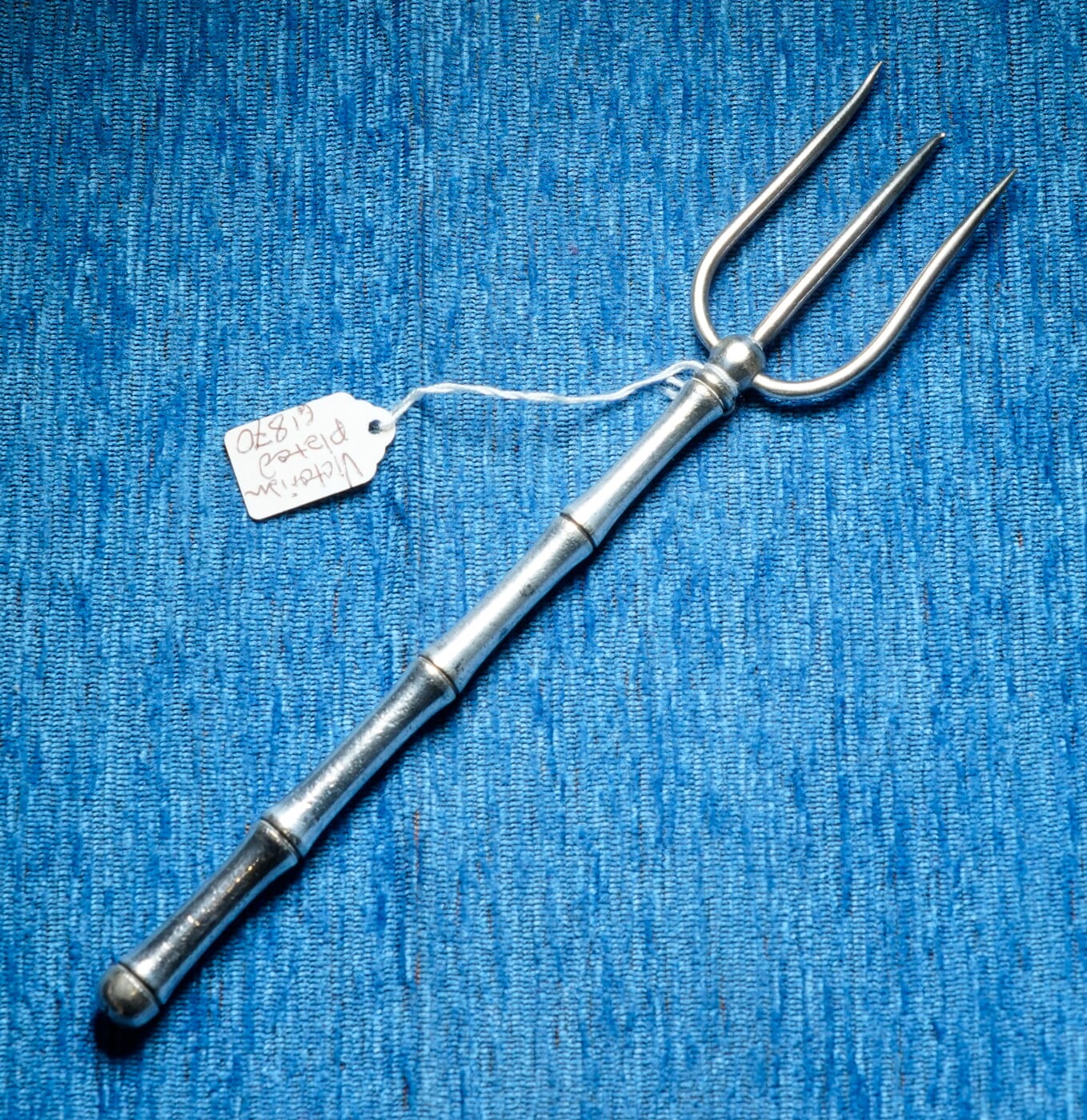 Small Sterling Silver pickle fork with zig-zag edge moulding,