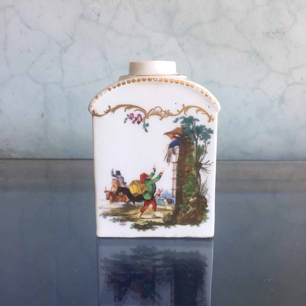 Toleware tea caddy, painted finish, chrome lid, c. 1880