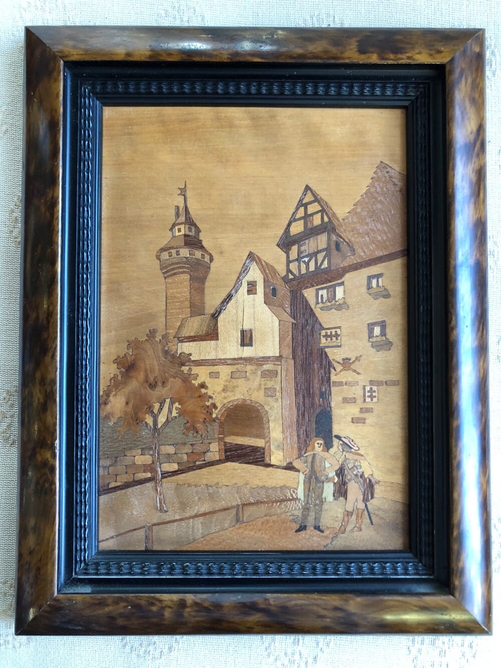Victorian Treen watchstand, with engine turned decoration and arcing loop holder. Circa 1890
