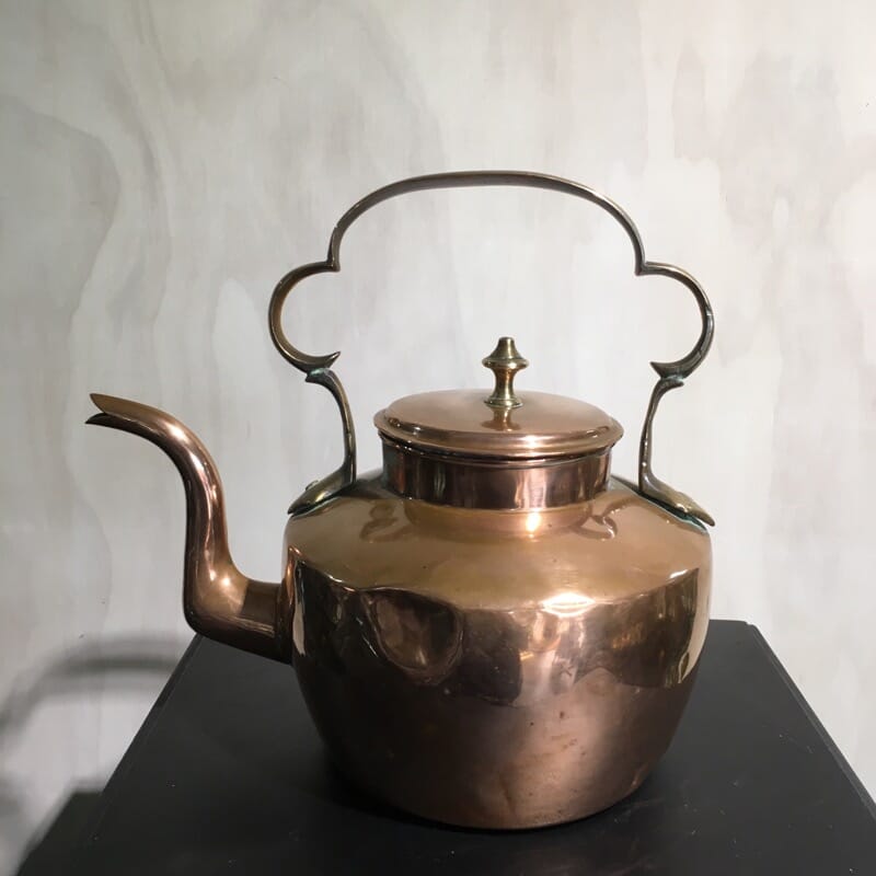 Victorian copper kettle, oval shaped with brass knop c. 1880