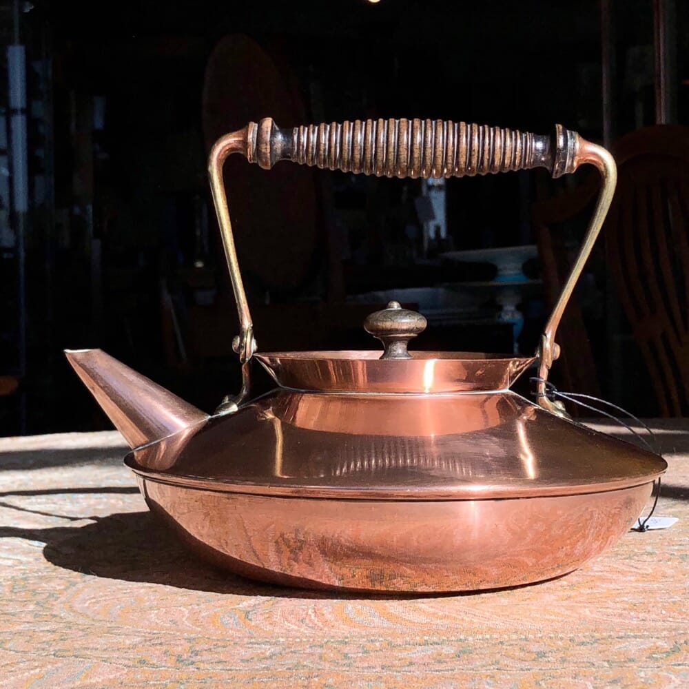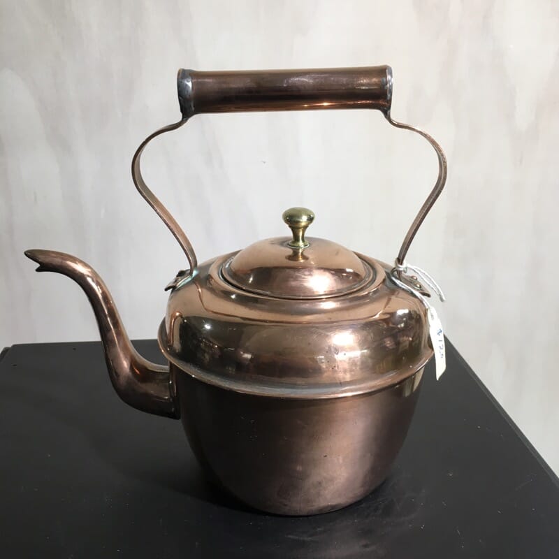Victorian copper kettle, oval shaped with brass knop c. 1880