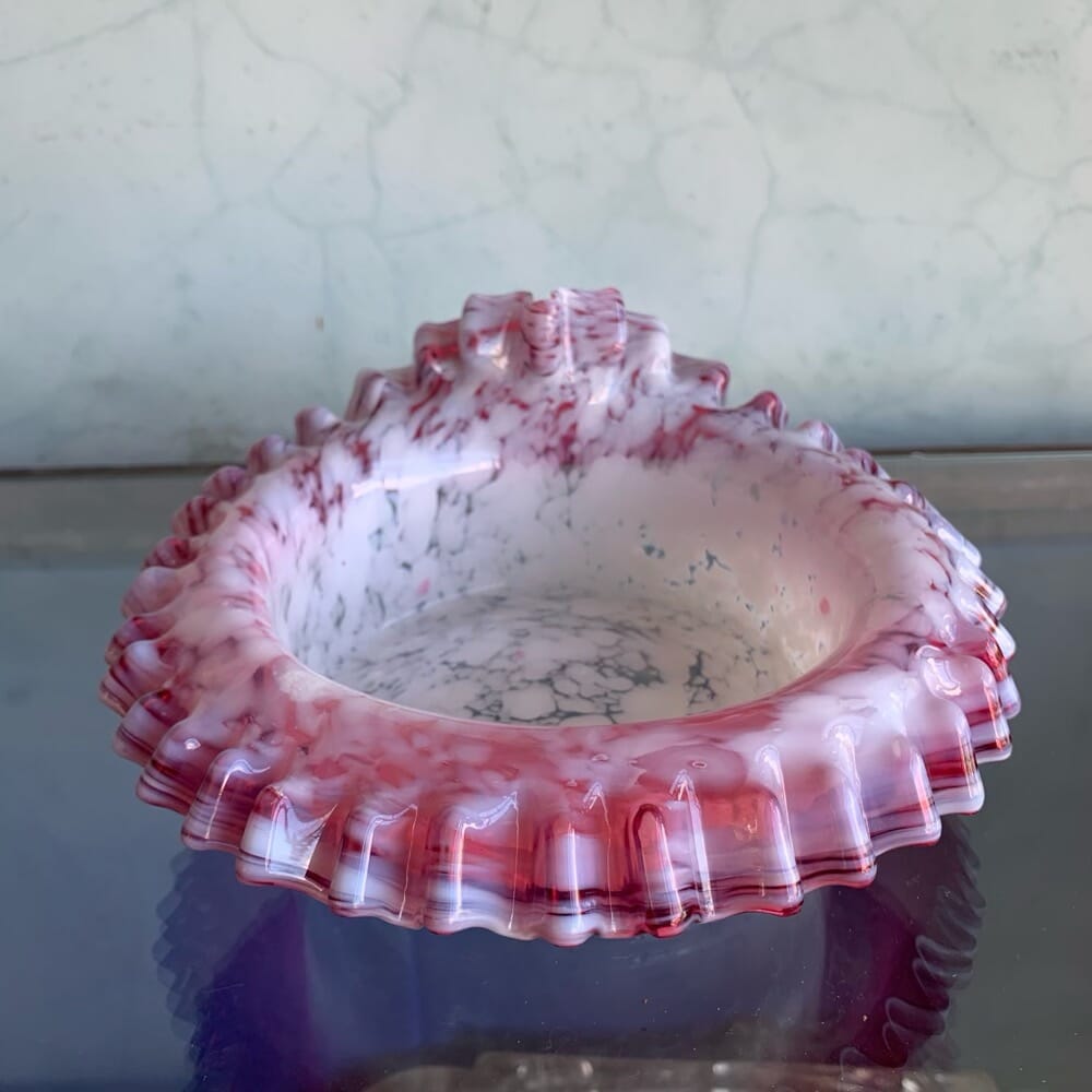 Victorian ruby glass lidded jar with applied clear glass oak leaf forming a handle