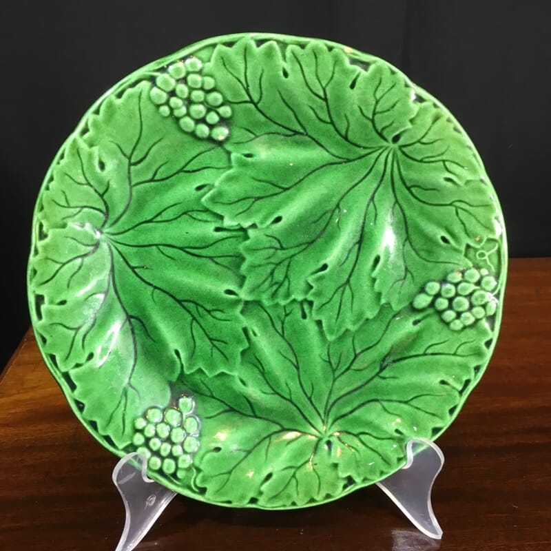 Wächtersbach green majolica plate in ‘fruiting vine’ pattern.