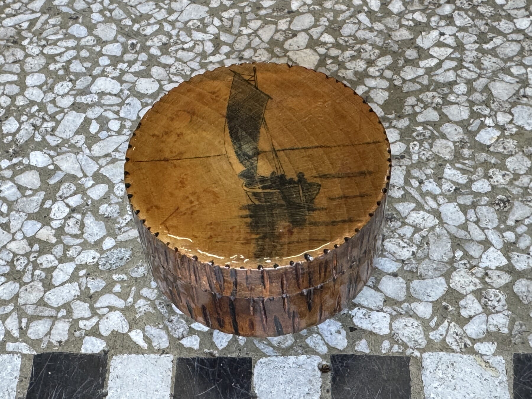 ‘Witch’ Pokerwork playing-card box with Grimaud ‘Invicta’ cards, c. 1910