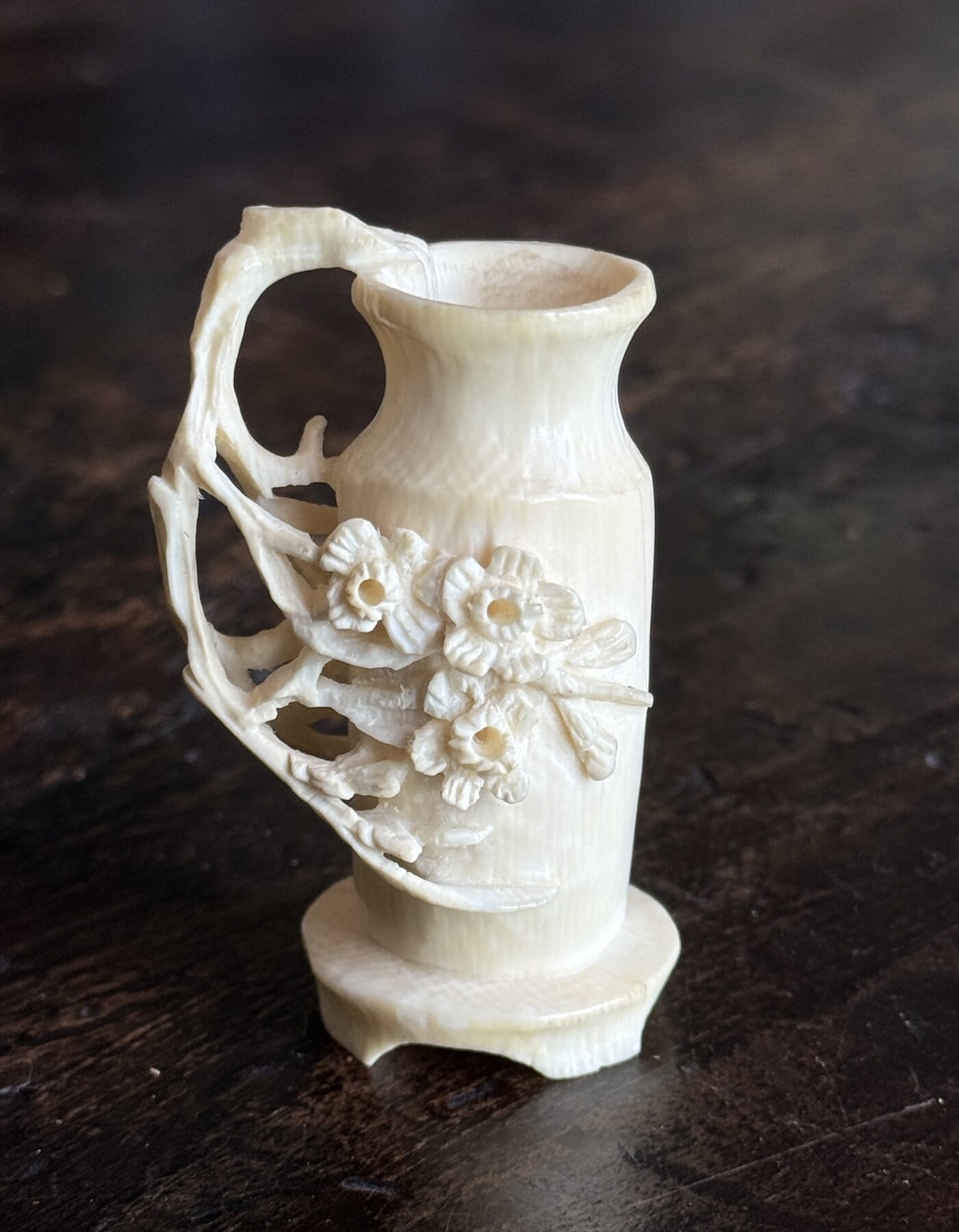 Small ivory vase with flowering prunus branch ‘handle’, Chinese, late 19th century