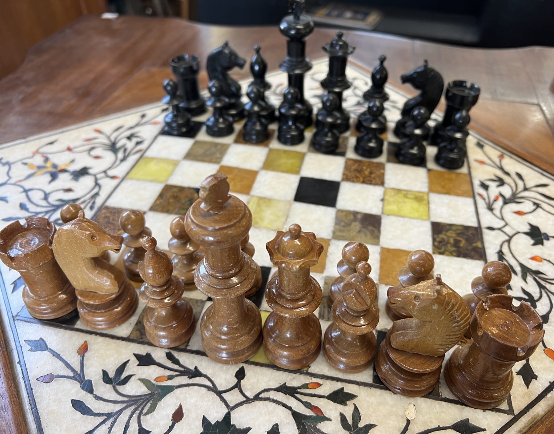 Napoleonic Prisoner-of-War carved bone Chess Set, in later Box, early 19th c.