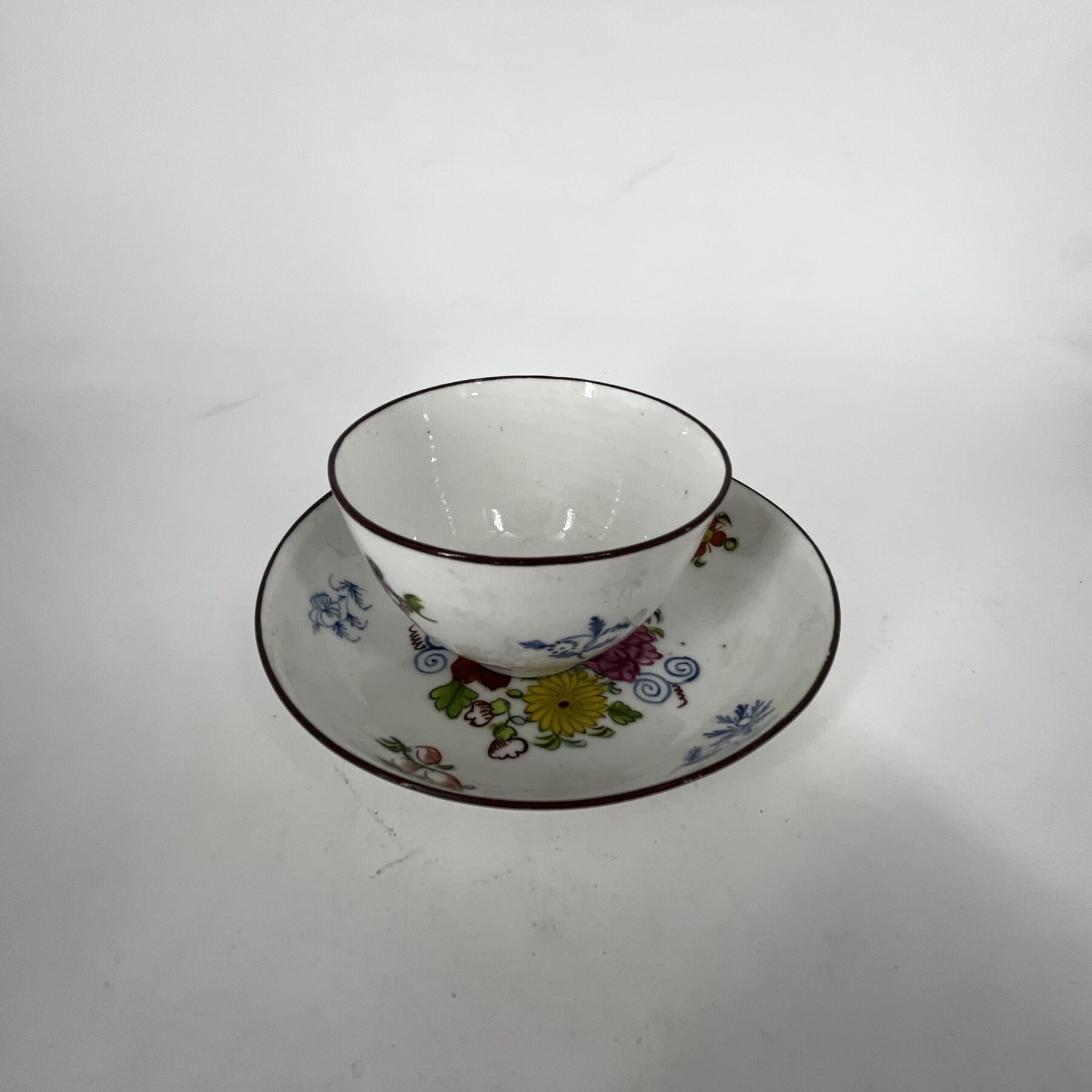 Newhall teabowl & saucer, brightly painted flowers pattern 1064, C. 1800