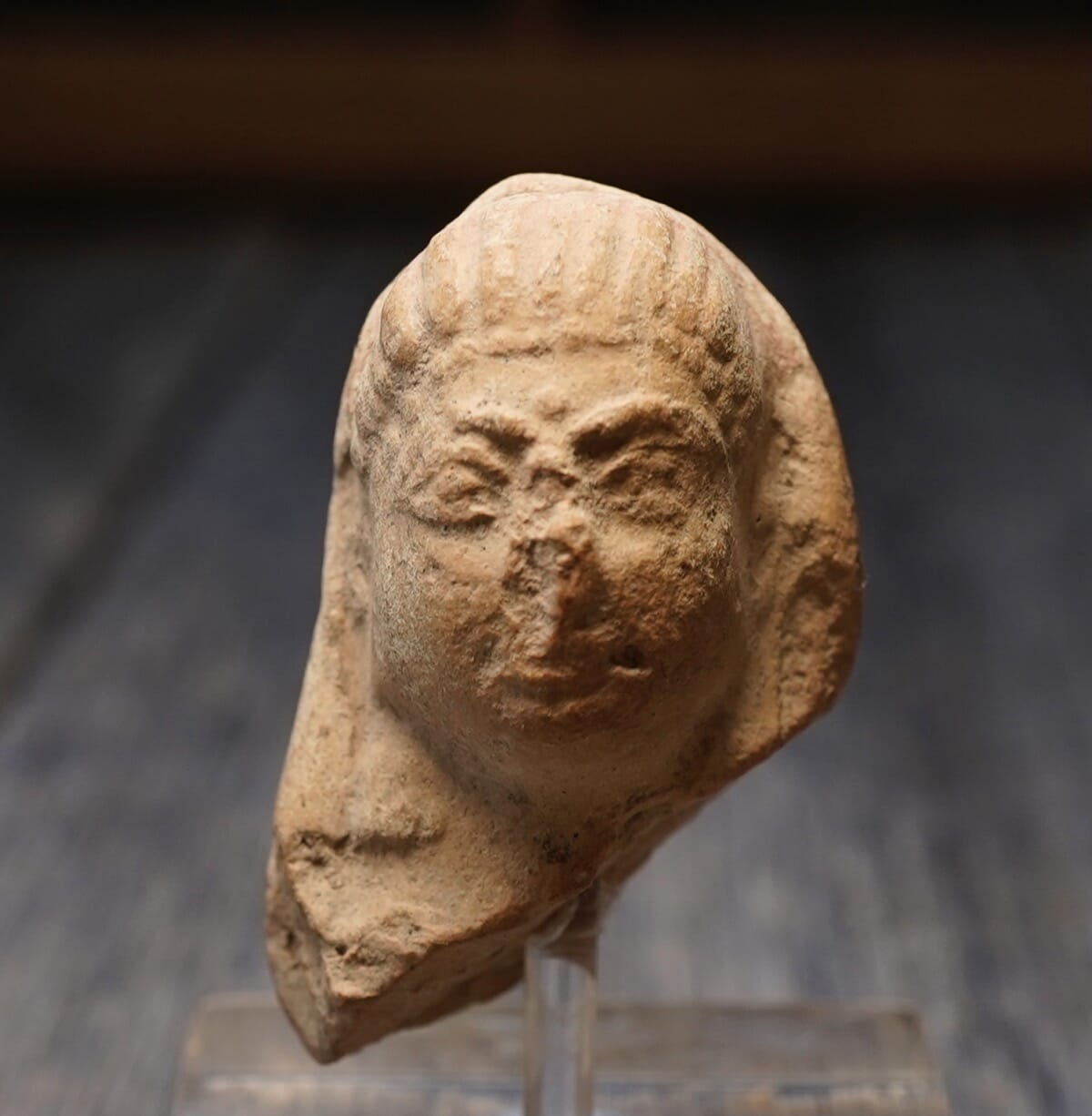 Cypriot pottery head, female deity in shawl, 4th-3rd century BC