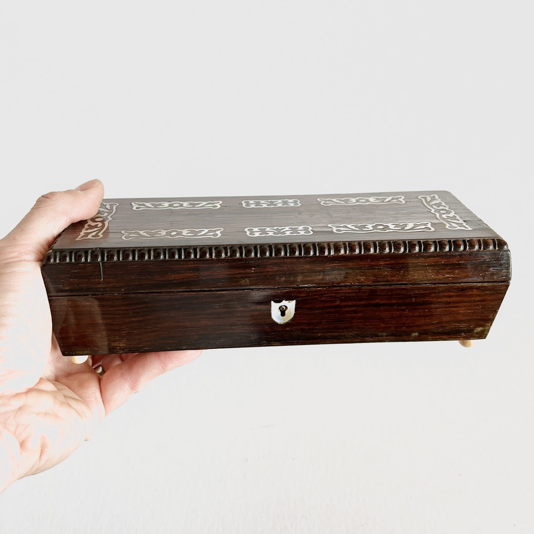 William IV Rosewood glove box, mother-of-pearl inlay, c. 1835