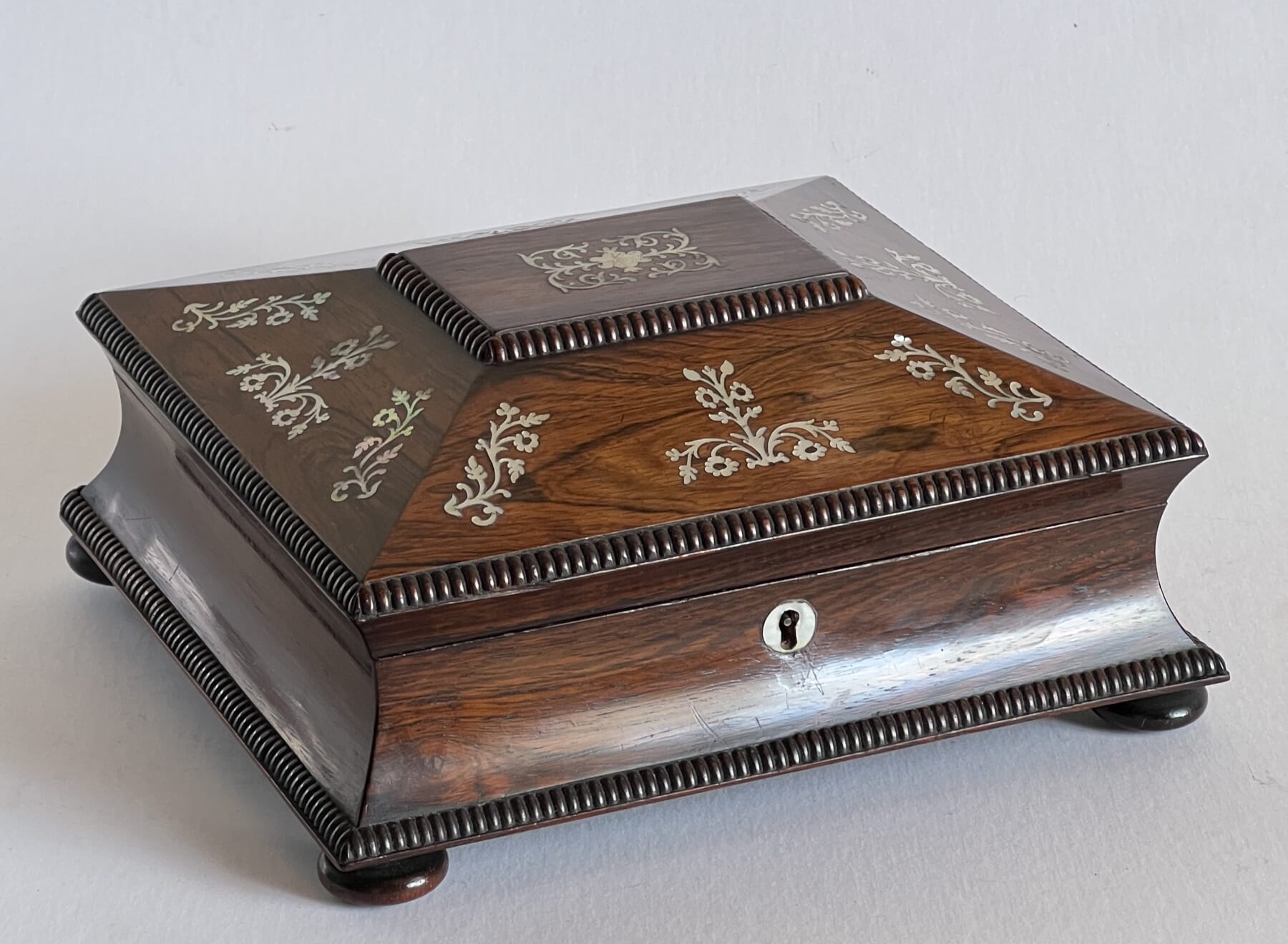 William IV Rosewood box, mother-of-pearl inlay, c. 1835