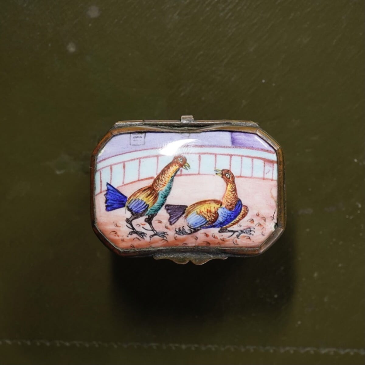 Samson enamel box, painted ‘cockfight’ scene, marked c. 1880