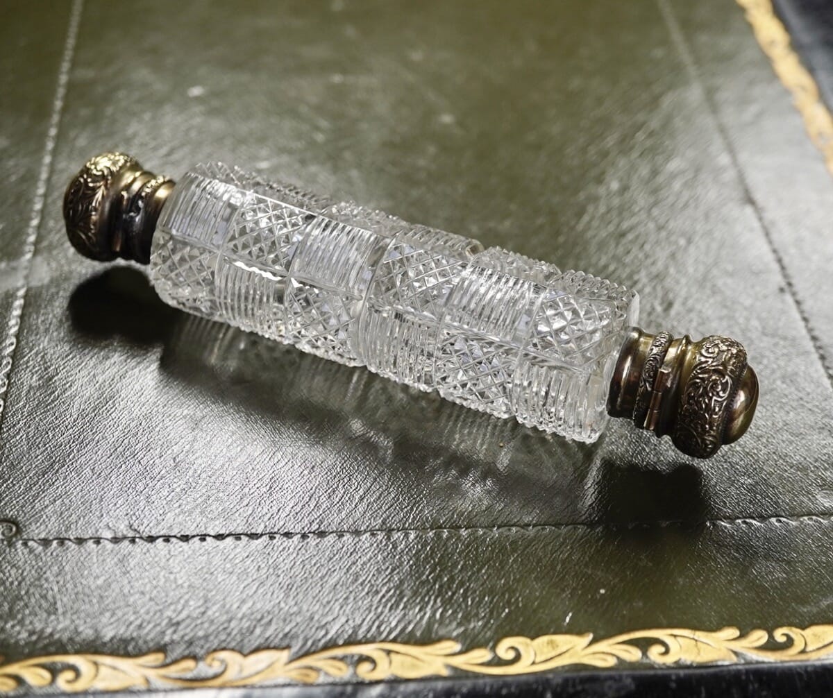 French double ended perfume, finely cut, polished brass domes, 19th century