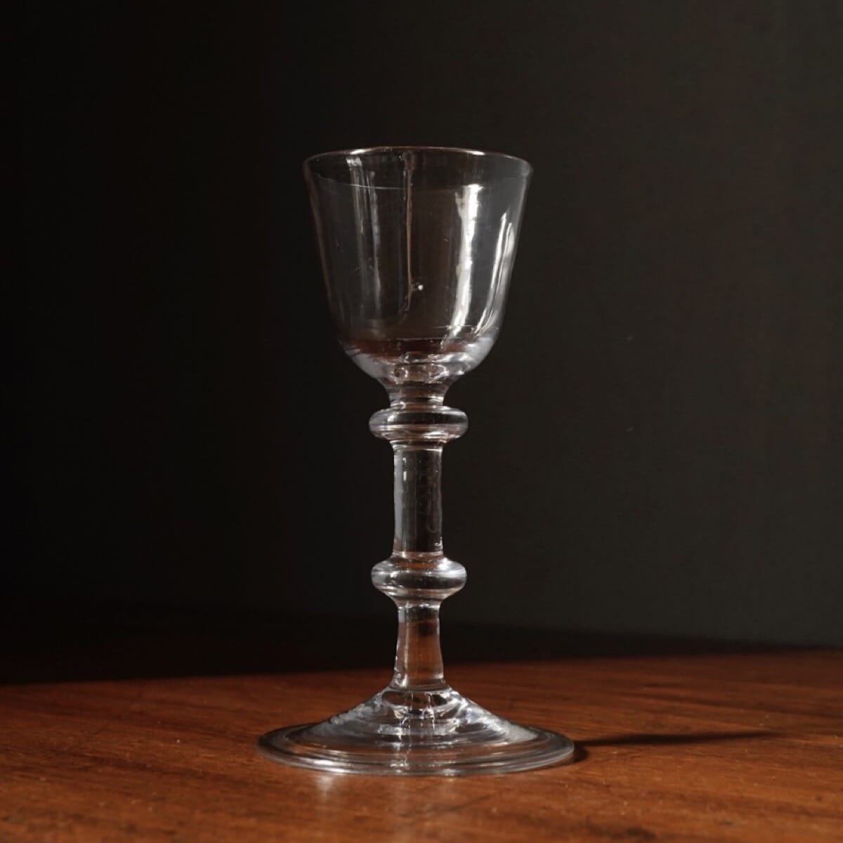 Rare Georgian glass with double-bladed knop, folded foot, c. 1740