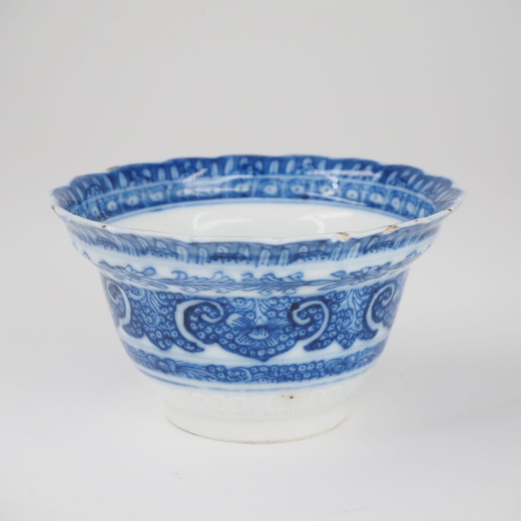 Chinese Export teabowl, unusual moulded dec, blue & white c. 1760