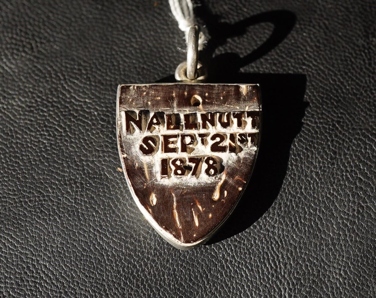 Sterling Silver +carved coconut shell momento, Charlie N.Allnut, 1878