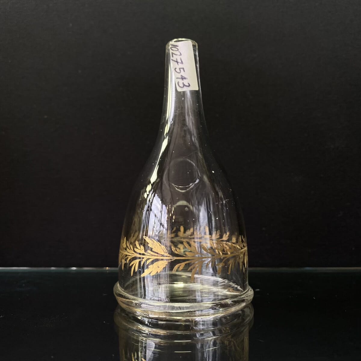 Continental glass wine funnel with gilt wreath, c. 1800
