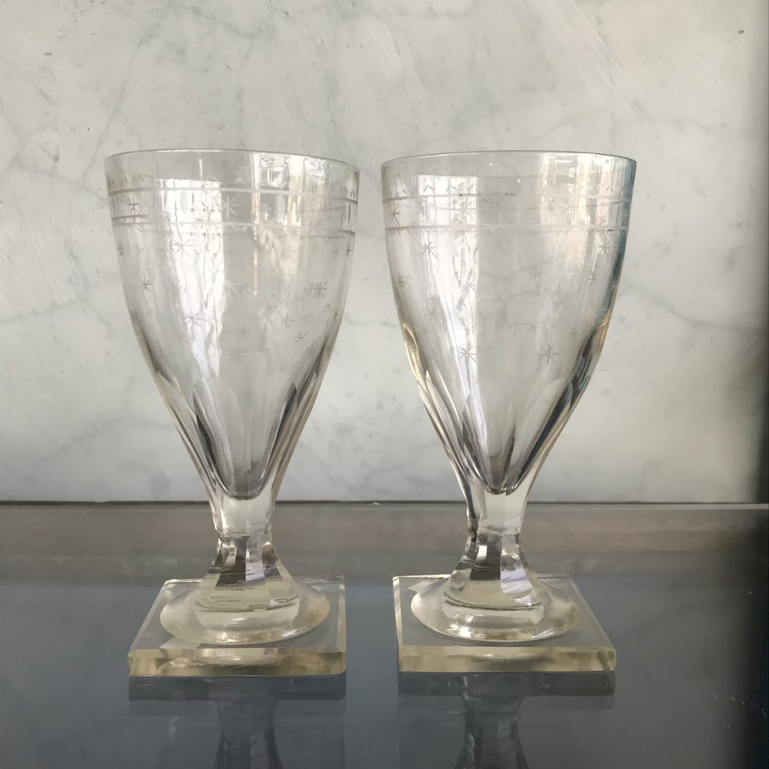 Pair of Continental glass rummers, star cut & square base, c.1820