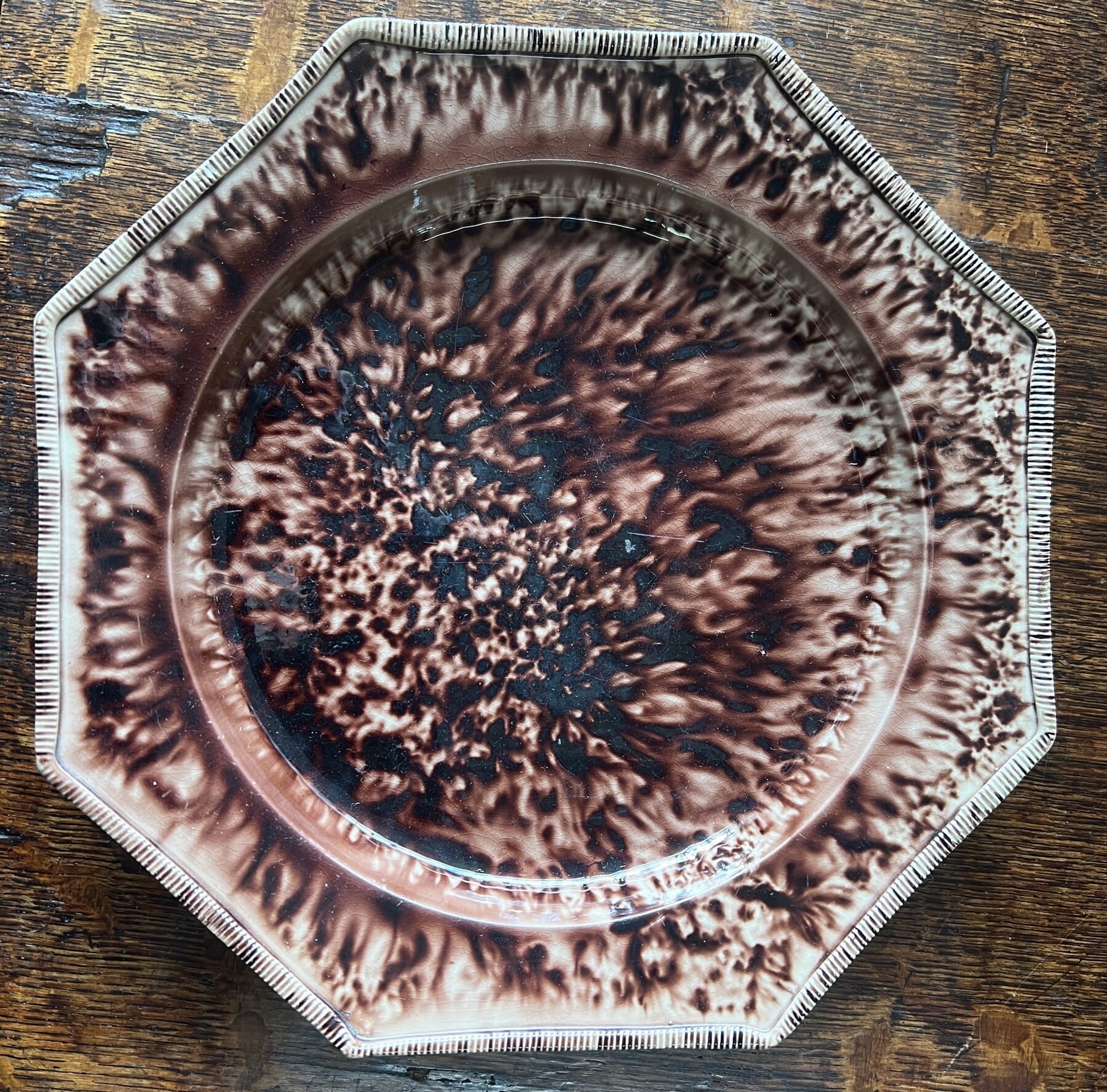 Whieldon type octagonal plate, ribbed rim, c. 1750