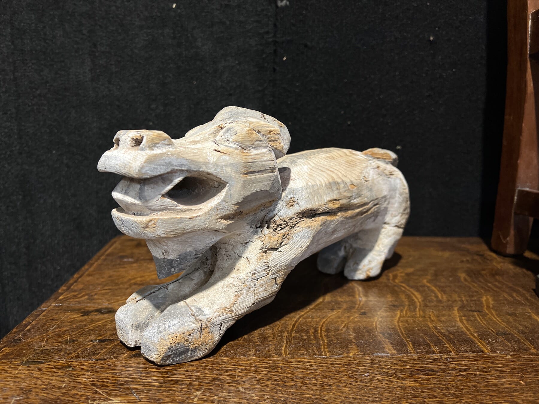 Chinese carved wood mythical beast, Western China, circa 10th century AD