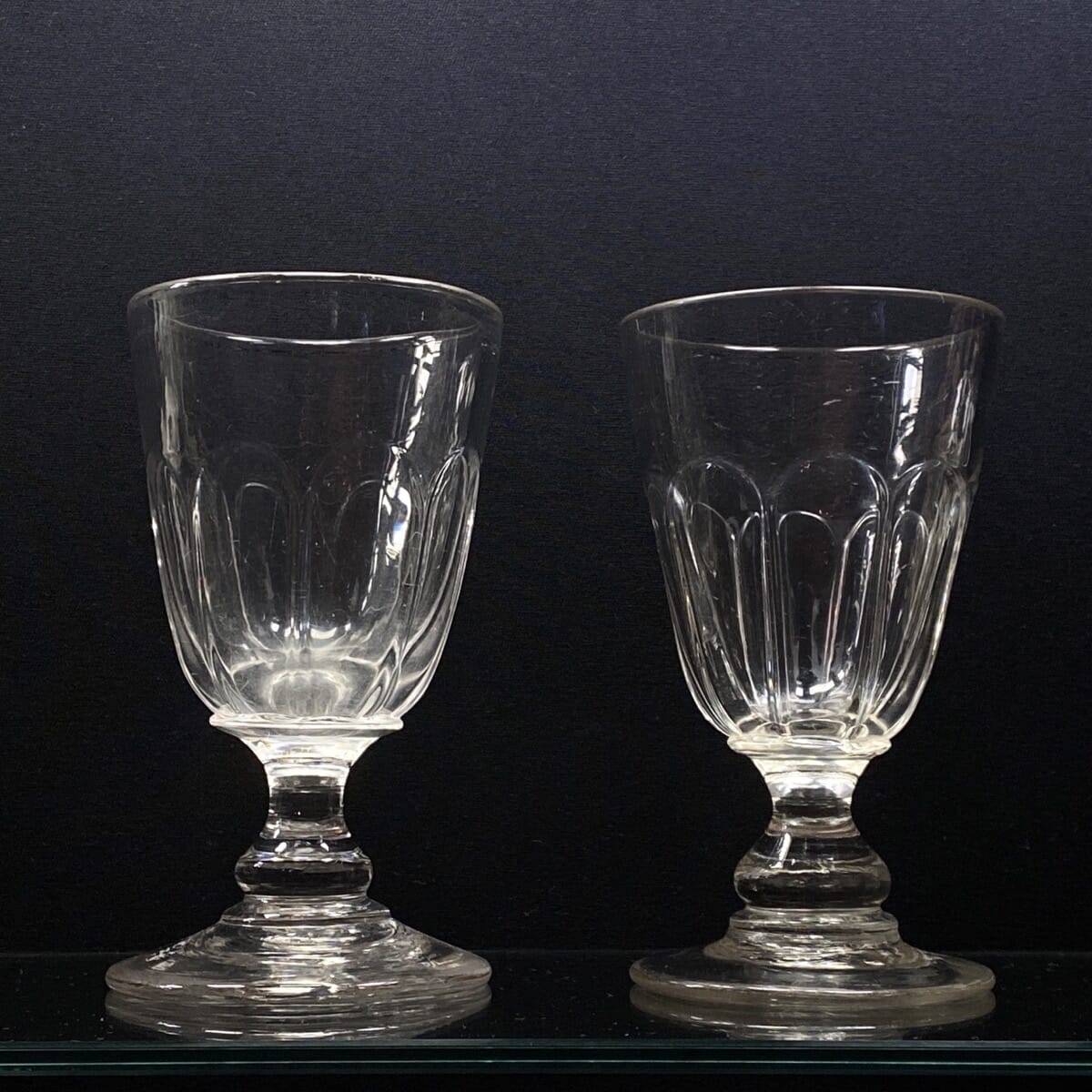 Pair of Georgian glass rummers, pedestal stem & petal-moulded bowls, c. 1815