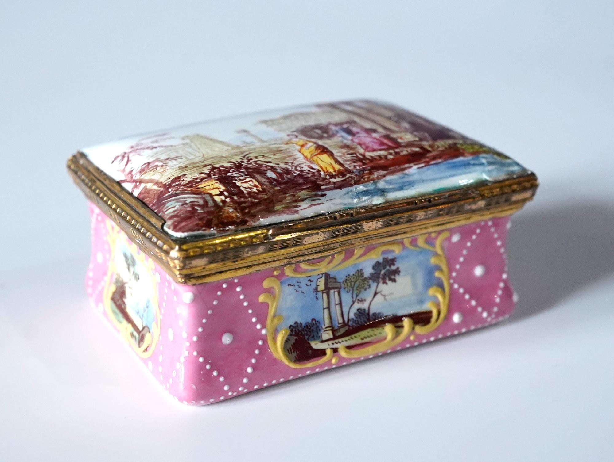 English Enamel ‘Grand Tour’ South Staffordshire snuff box, c. 1770